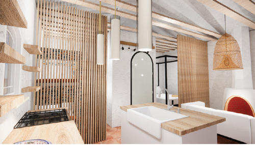 Hecho A Mano, meaning “handcrafted,” is a team project made up of me and three other designers within the TCU Interior Design program. The project delivers the design for a refugee center located on the United States–Mexico border, composed of individual housing units for immigrant families.